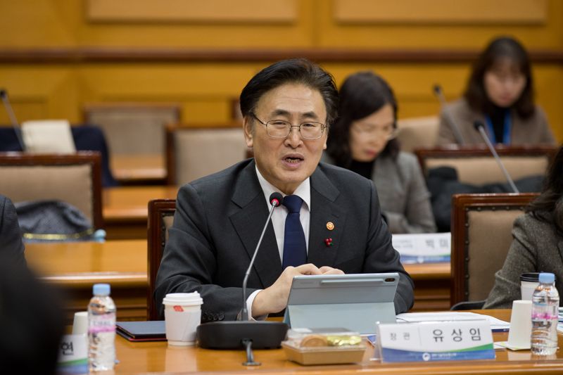 유상임 과학기술정보통신부 장관이 3일 대전광역시 유성구 한국기계연구원을 방문, 간담회에서 인사말을 하고 있다. 과기정통부 제공
