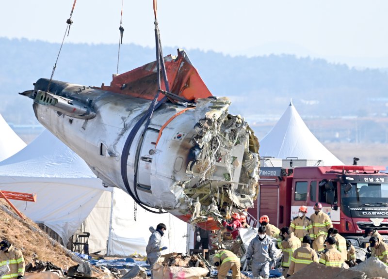 제주항공 여객기 참사가 발생한 전남 무안국제공항에서 사고 동체 잔해 수습 작업이 진행되고 있다. 뉴시스