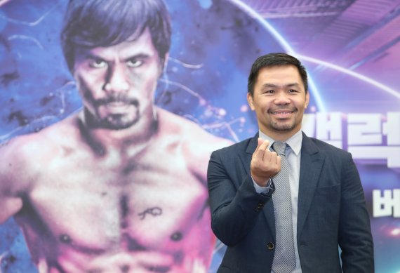 '필리핀 복싱 영웅' 매니 파퀴아오가 지난 2022년 중구 소공동 프레스센터에서 열린 메타버스 아바타 행사에서 포즈를 취하고 있다. 뉴스1