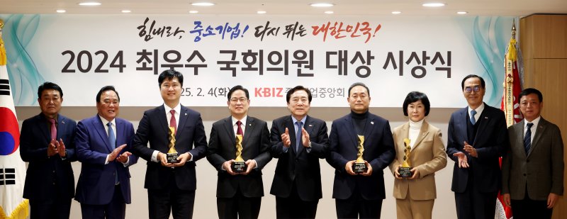 중소기업중앙회는 4일 서울 여의도 중기중앙회에서 지난해 중소기업 경영환경 개선과 권익 보호에 기여한 국회의원을 선정해 시상하는 '2024년 최우수 국회의원 대상 시상식'을 진행했다.