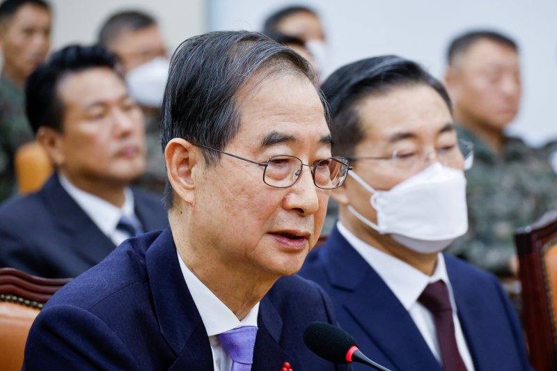 한덕수 국무총리가 서울 여의도 국회에서 열린 윤석열 정부의 비상계엄 선포를 통한 내란 혐의 진상규명 국정조사 1차 청문회에 출석해 의원 질의에 답하고 있다. 사진=뉴스1화상