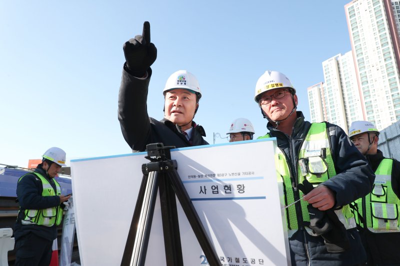 성제 의왕시장이 국가철도공단에서 진행 중인 인동선과 월판선 지하철 사업 현장을 방문, 원활한 사업 진행을 당부했다. 의왕시 제공