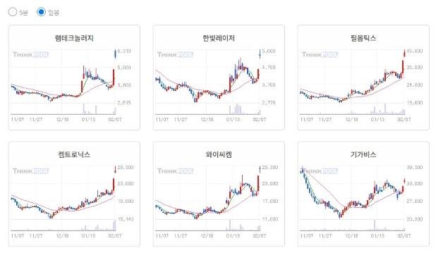 : 램테크놀러지, 한빛레이저, 필옵틱스, 켐트로닉스, 와이씨켐