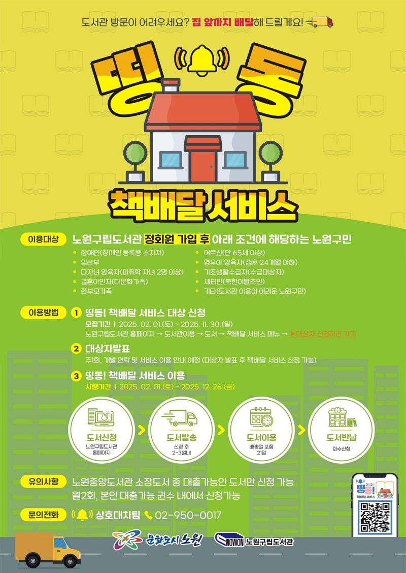[파이낸셜뉴스] 서울 노원구는 도서관 운영시간 중 방문이 어려운 구민을 위해 ‘띵동! 책배달 서비스’를 운영하고 있다고 7일 밝혔다.