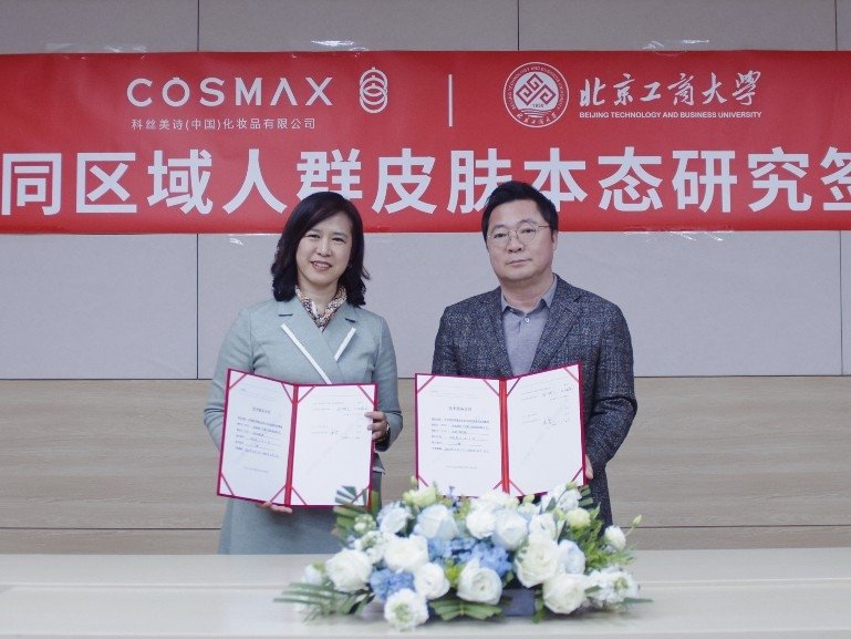 지난달 20일 중국 상하이에서 열린 협약식에는 박명삼 코스맥스차이나 R&I센터 연구원장과 멍훙 베이징공상대 국제화장품학원 부원장 등이 참석했다.