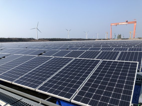 전북 군산 유수지에 설치된 수상 태양광 자료사진. 뉴스1