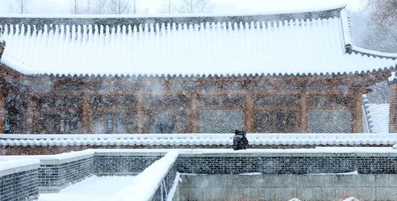 전북 전역에 대설특보가 발효된 지난 7일 전북자치도 전주시 덕진공원에서 시민들이 내리는 눈을 맞으며 발걸음을 재촉하고 있다. 뉴스1