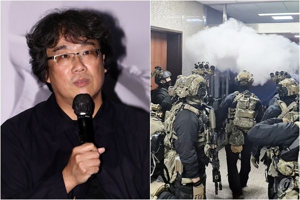 봉준호 영화감독, 윤석열 대통령이 지난해 12월 3일 저녁 비상계엄을 선포한 가운데 4일 밤 서울 국회의사당에서 계엄군이 국회 본청으로 진입하고 있다. 사진=연합뉴스