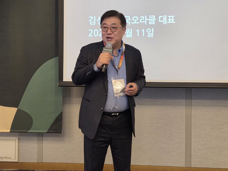 김성하 한국오라클 사장이 11일 서울 강남구 그랜드 인터콘티넨탈 서울 파르나스에서 기자간담회를 진행하고 있다. 한국오라클 제공