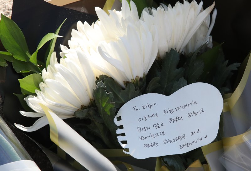 지난 10일 대전 서구 한 초등학교에서 1학년 A양이 교사에 의해 흉기에 찔려 사망하는 사고가 발생했다. 11일 범행이 발생한 학교입구에 A양을 추모하는 국화꽃과 메모가 놓여 있다. /사진=뉴스1