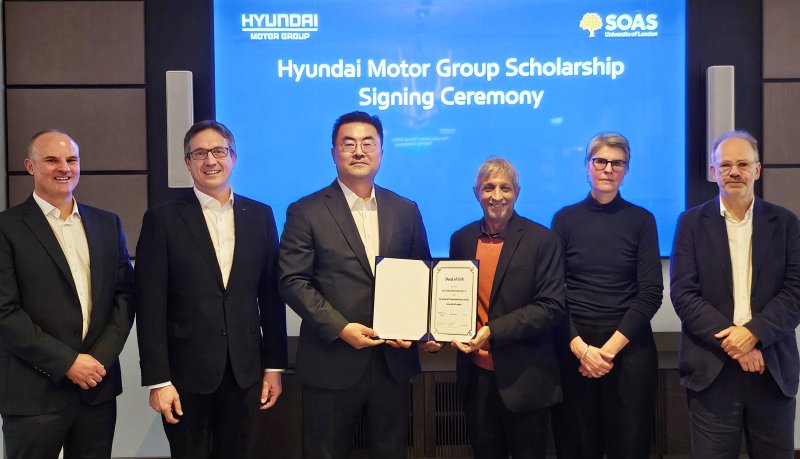 현대차그룹과 SOAS는 지난 10일(현지시간) 런던대학교 SOAS 세네트 챔버에서 '현대차그룹 장학금 기부 계약'을 체결했다고 11일 밝혔다. SOAS는 런던대학교를 구성하는 17개의 단과대학 가운데 하나로, 개발도상국, 특히 아시아와 아프리카 지역 연구에 특화된 전문가를 양성하는 교육기관이다.