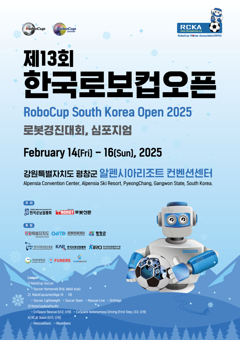 【파이낸셜뉴스 평창=김기섭 기자】강원관광재단이 후원하는 제13회 한국 로보컵 오픈이 오는 15일 평창 알펜시아 리조트에서 개막한다.