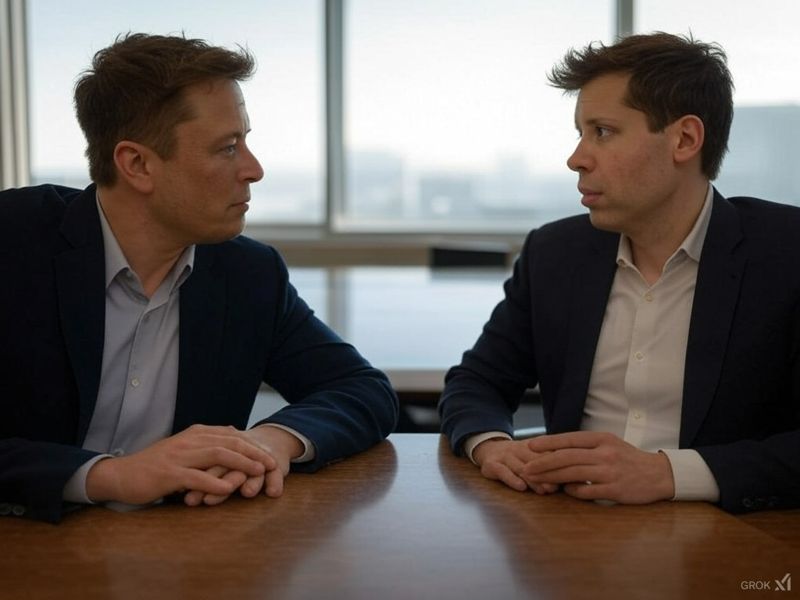 일론 머스크 테슬라 최고경영자(CEO)와 샘 올트먼 오픈AI CEO. 이미지 생성=xAI 그록(Grok)