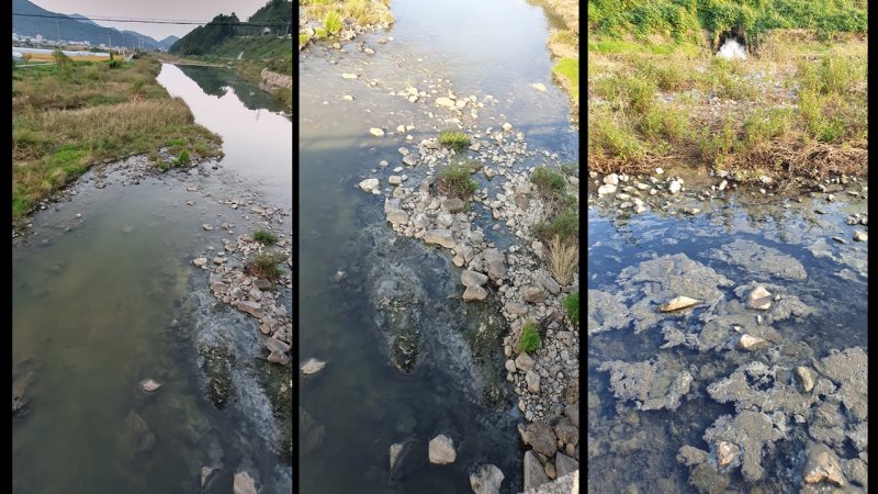 지난해 10월 중순 울주군 웅촌면, 양산시 웅상읍 부근에서 생활하수 등의 오수가 울산 식수원인 회야강으로 유입되고 있는 모습을 울산환경운동연합이 촬영해 공개했다. 울산환경운동연합 제공