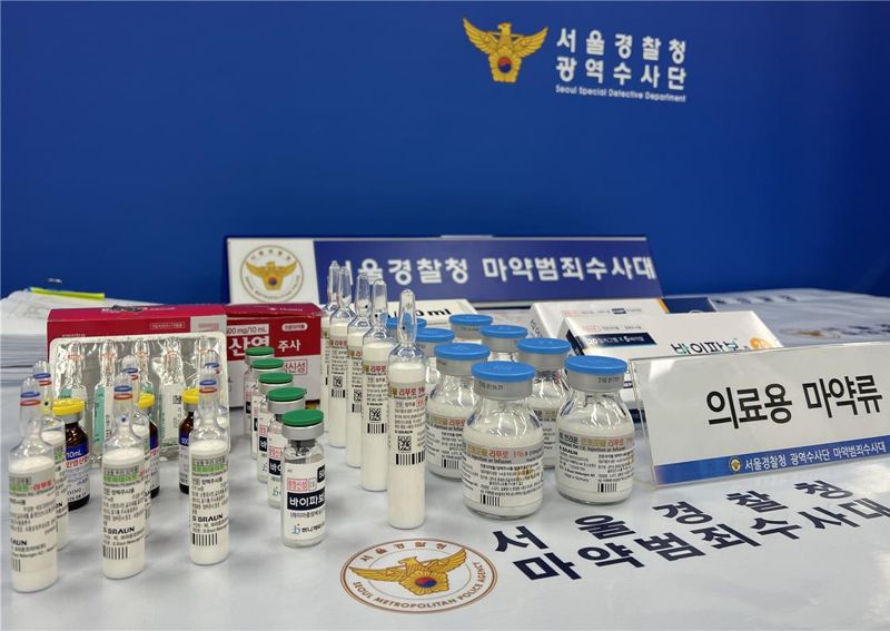 서울경찰청 광역수사단 마약범죄수사대가 의료용 마약을 신고하지 않고 불법 투약한 A씨 일당으로부터 압수한 증거물. 사진=서울경찰청 광역수사단 마약범죄수사대 제공