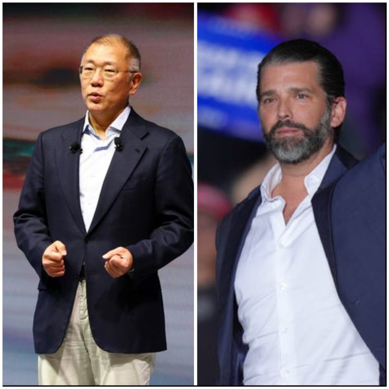 정의선 현대차그룹 회장(왼쪽)과 도널드 트럼프 대통령의 장남 도널드 트럼프 주니어. 뉴시스