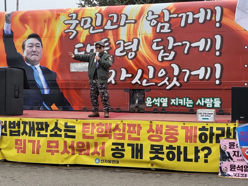 15일 오후 경기 의왕시 서울구치소 정문 앞에서 윤석열 대통령 탄핵을 반대하는 집회가 진행되고 있다. 사진=김경수 기자