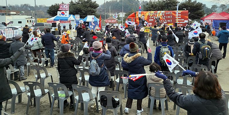 15일 오후 경기 의왕시 서울구치소 정문 앞에서 보수단체 회원 약 100여명이 참여한 가운데 윤석열 대통령 탄핵을 반대하는 집회가 진행되고 있다. 사진=김경수 기자