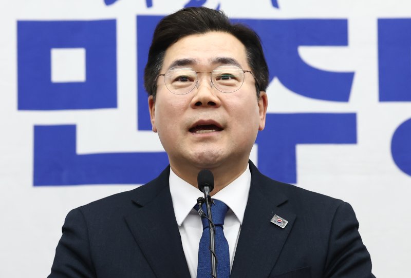 박찬대 더불어민주당 원내대표가 14일 오후 서울 여의도 국회에서 열린 의원총회에서 발언하고 있다. 뉴스1