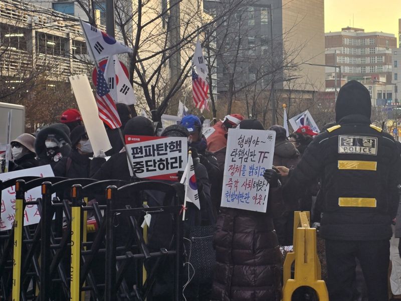 지난 18일 오후 6시20분께 문형배 헌법재판소장 권한대행과 같은 아파트에 사는 한 주민은 이렇게 소리쳤다. 일부 윤 대통령 지지자들이 문 권한대행의 집 앞으로 몰려가 집회하며 시민 통행을 방해하고 있었다. 100명 안팎의 시위대는 인도를 점거했다. 경찰이 여러 차례 시위대를 설득한 뒤에야 시민들은 1m 남짓한 공간으로 지나갈 수 있었다.