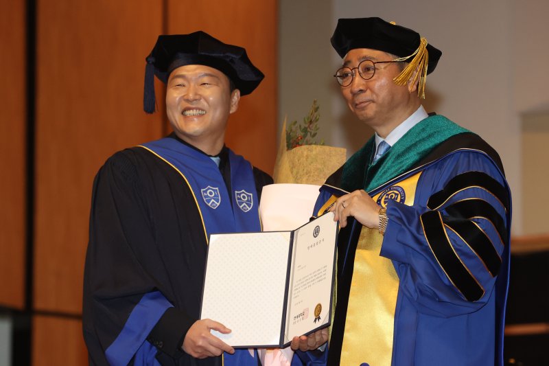 [파이낸셜뉴스] 가수 싸이(본명 박재상)가 연세대학교 명예졸업장을 받았다.