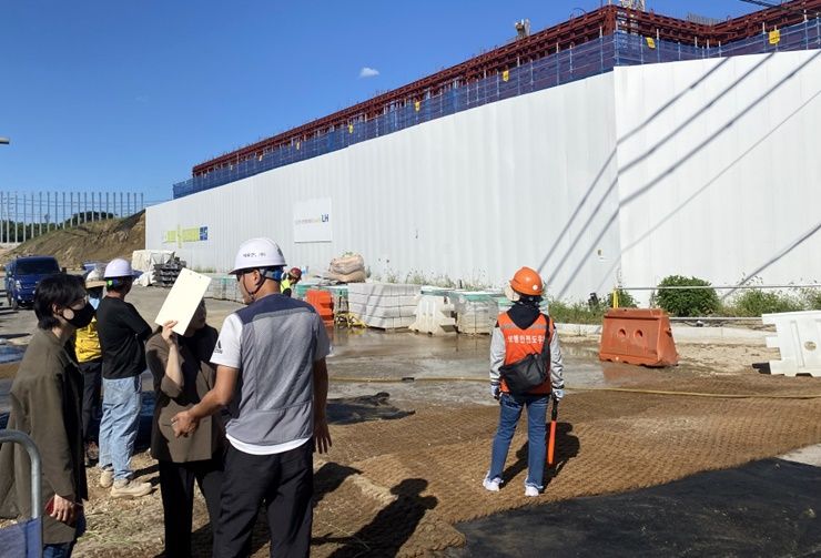 부천시 관계자들이 부천원일초등학교 주변 건설 공사장에서 안전 점검을 실시하고 있다. 부천시 제공