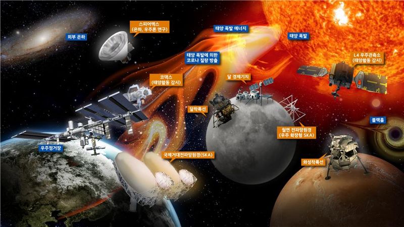 우주탐사는 세계 최초로 L4 태양권 우주관측소를 구축해 우주환경 변화를 예측하고, 2032년 달착륙선을 보내 우주과학탐사 능력을 확보함으로써 화성까지 탐사영력을 확장할 계획이다.
