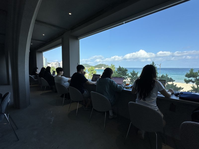 탁트인 바다를 보며 업무를 할 수 있도록 마련된 해운대 송정 워케이션 업무공간. 해운대구 제공