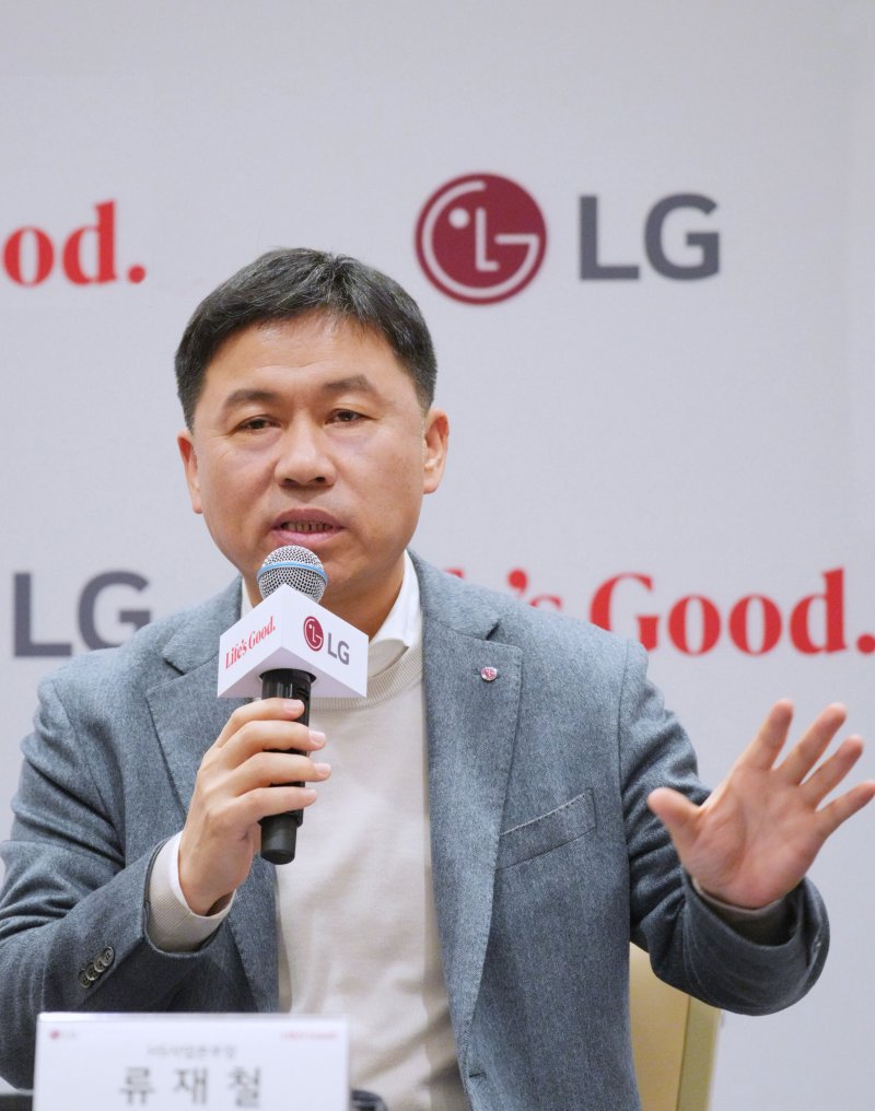 LG전자 HS사업본부장 류재철 사장이 25일(현지시간) DCW 2025가 열리는 미국 네바다주 라스베이거스에서 기자간담회를 열고 B2B·고효율·AI 홈을 중심으로 세계 최대 프리미엄 가전 시장 미국에서 확고한 리더십을 이어갈 것이라고 밝혔다. LG전자 제공