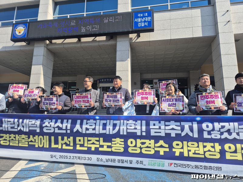 경찰은 지난달 11일 서울 광화문 앞에서 열린 윤 대통령 탄핵 촉구 행진과 지난달 3~5일 대통령 관저 앞에서 열린 윤 대통령 탄핵 촉구 철야 집회에서 민주노총 등이 사전에 신고된 범위 이상으로 도로를 점유했다고 보고 양 위원장에게 추궁할 계획이다.