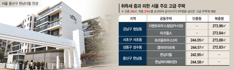 정부가 공동주택의 '고급주택 취득세 중과제도' 손질에 나서는 가운데 시장에서는 공시가격 기준을 9억원에서 50억원가량으로 높여야 한다는 분위기다. '꼼수 설계'를 야기한 면적기준을 삭제하는 대신 현실과 동떨어진 가격기준을 대폭 상향해야 한다는 것이다.