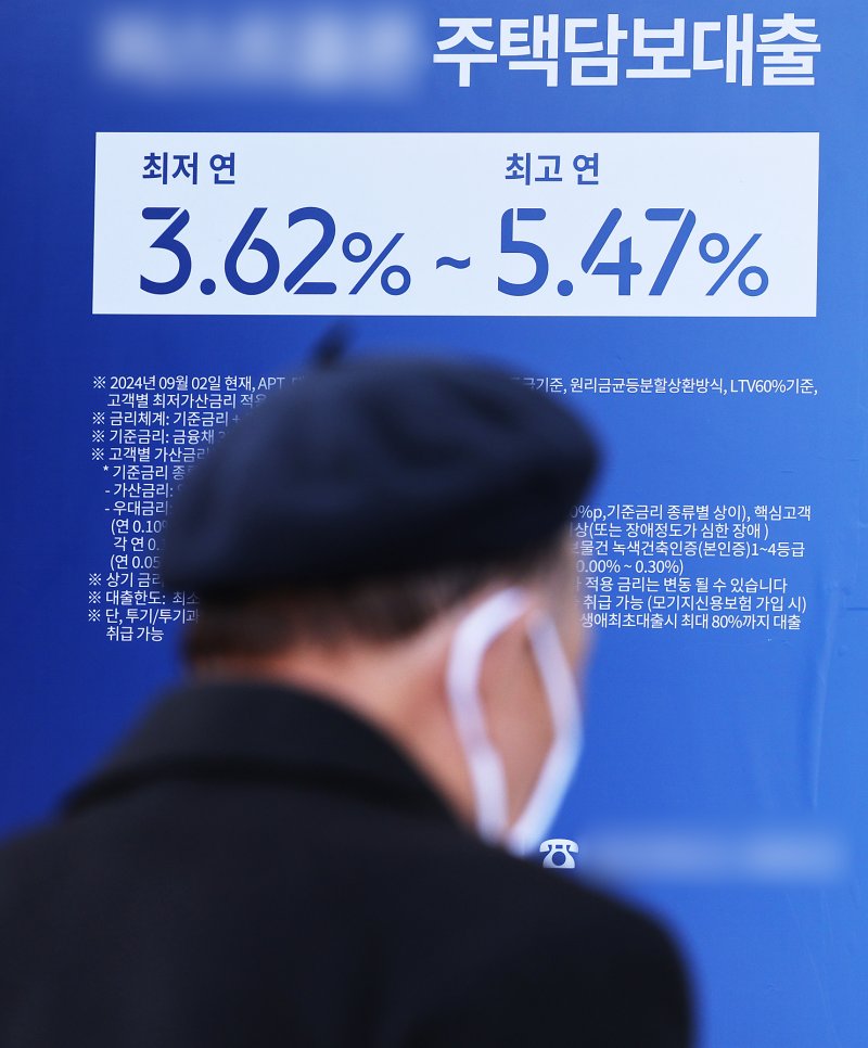 서울의 한 은행에 주택담보대출 금리 안내문이 붙어 있다. 뉴스1화상