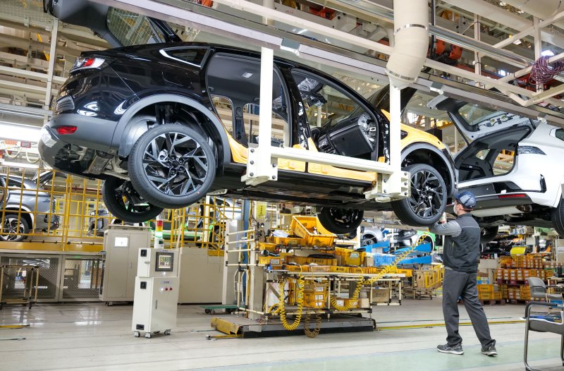 르노코리아 조립공장에 새롭게 설치한 전기차 생산대응 섀시 행거. 르노코리아 제공