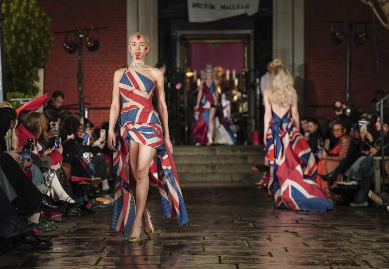도널드 트럼프 미국 대통령이 재선에 성공한 지난해 영국 시민권을 신청한 미국인들의 수가 사상 최대를 기록했다. 지난달 23일(현지시간) 런던 패션위크 기간 세인트폴교회 코벤트가든에서 모델들이 영국 국기 문양의 옷을 선보이고 있다. AP 뉴시스