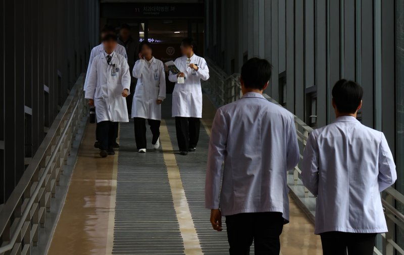 지난달 10일 서울 시내 한 대학병원에서 의료진이 이동하고 있다. 뉴시스
