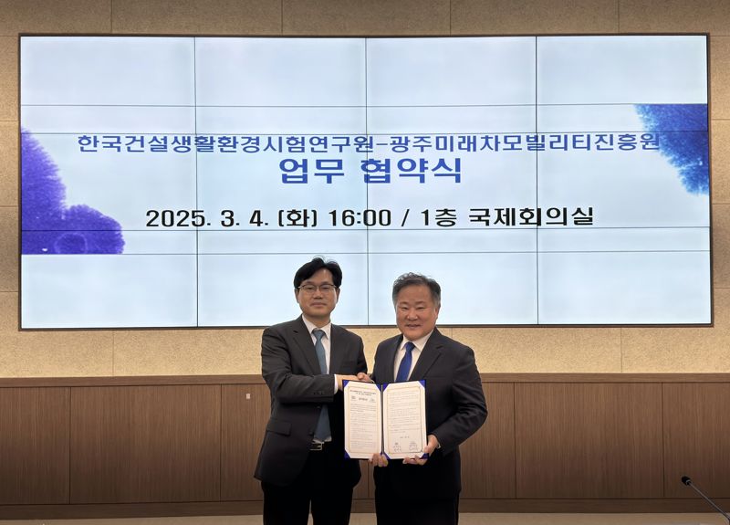 [파이낸셜뉴스] 한국건설생활환경시험연구원(KCL)은 광주미래차모빌리티진흥원(GAMA)과 ‘미래첨단모빌리티 산업 발전을 위한 업무협약’을 GAMA 광주 본원에서 체결했다고 5일 밝혔다. 이번 업무협약은 양 기관이 미래첨단모빌리티와 관련한 새로운 비즈니스 모델 창출과 기술 발전 협력을 통해 시험인증, 표준화 분야에서 글로벌 리더쉽을 확보하기 위해 추진됐다.