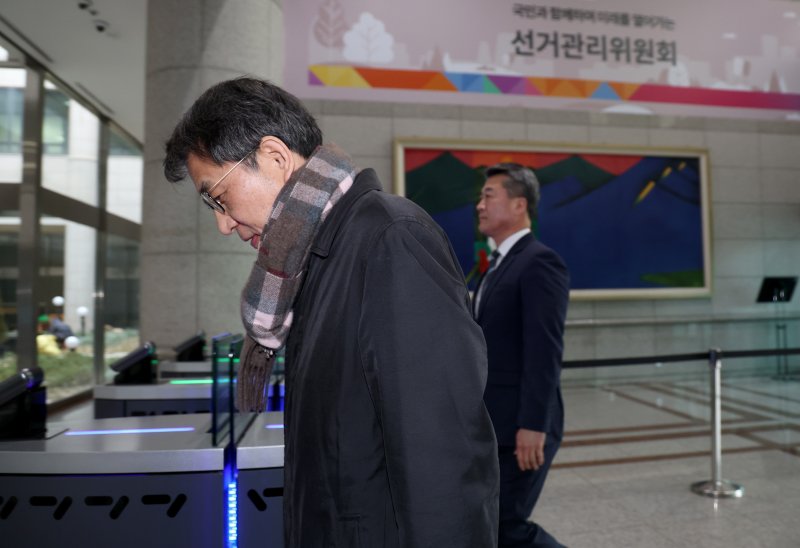 노태악 중앙선거관리위원회 위원장이 5일 경기 과천 중앙선관위로 들어서고 있다. 선관위는 고위직 자녀 채용 비리로 논란이 일고 있다. /사진=뉴시스화상