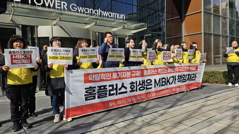 강우철 마트노조 위원장은 "기업 회생 신청 이유가 혹시 발생할지도 모르는 잠재적 단기자금 이슈에 대한 선제적 대응이라고 하는데 이것부터 정상적이지 않다"며 "홈플러스는 이미 작년에 흑자 전환했고 기업회생 신청할 아무런 이유가 없다"고 주장했다.