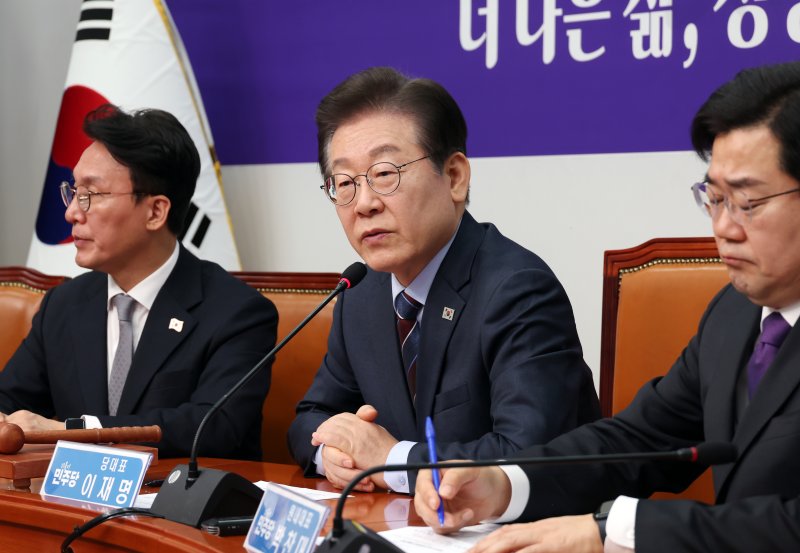 이재명 더불어민주당 대표가 7일 서울 여의도 국회에서 열린 최고위원회의에서 발언하고 있다. 뉴시스