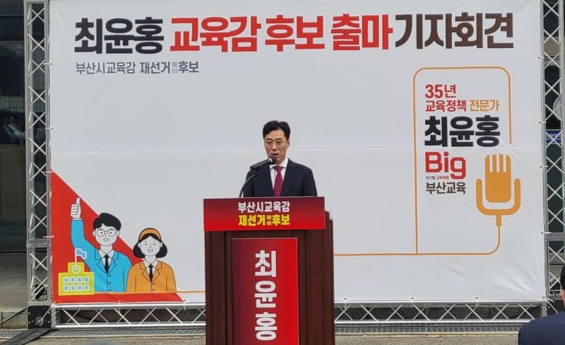 최윤홍 예비후보의 부산시교육감 재선거 출마 기자회견 모습. 연합뉴스 제공