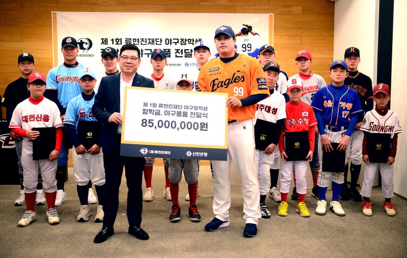 [파이낸셜뉴스] 류현진재단은 7일 대전 한화생명이글스파크에서 '제1회 류현진재단 야구장학생 장학금 전달식'을 진행했다. 이 행사에는 재단의 이사장인 류현진과 신한은행 대전세종본부의 정태용 본부장을 비롯해 장학생들과 그들의 학부모가 참석했다.