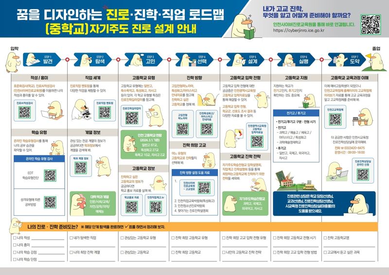인천사이버진로교육원 웹사이트 및 QR코드를 통해 손쉽게 접근할 수 있도록 구성됐으며 학생, 학부모, 교사들이 필요로 하는 정보를 Q&A 형태로 제공해 활용도를 높였다.