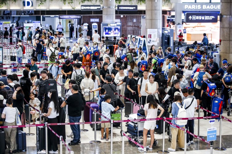 서울 강서구 김포국제공항 국제선 출국수속 카운터가 여행객들로 붐비고 있다. 뉴시스