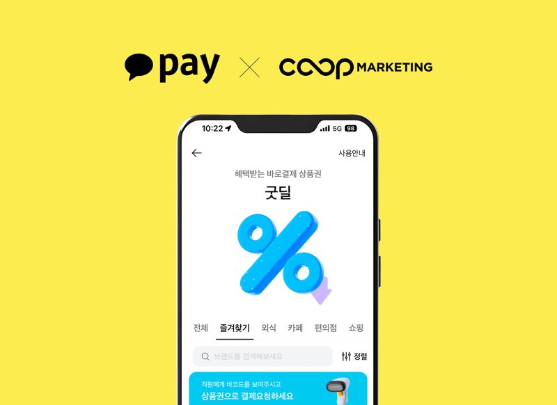 이번 제휴를 통해 쿠프마케팅은 카카오페이의 신규 서비스인 ‘굿딜’에 쿠프마케팅이 보유한 브랜드 인프라 중 이마트, 메가MGC커피 등 총 30여 개 제휴 브랜드를 사용처로 공급했다.