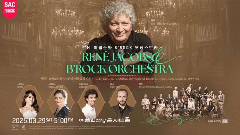 '2025 SAC 월드스타시리즈' 일환으로 마련된 이번 공연에서는 헨델의 첫번째 오라토리오 '시간과 깨달음의 승리'를 선보인다. 고음악 지휘의 거장 르네 야콥스의 지휘 아래 시대악기 전문 악단인 비록 오케스트라가 연주한다.