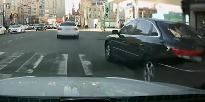 2022년 1월 수영구 민락동에서 A씨의 차량(검은색)이 차선 변경 차량에게 사고 유발하는 모습. 부산경찰청 제공