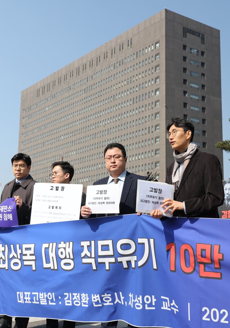 김 변호사와 차 교수는 이날 서울중앙지검 앞에서 기자회견을 열고 최 대행을 고발한다고 밝혔다.