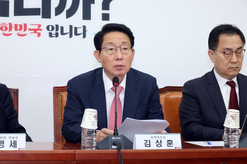 김상훈 국민의힘 정책위의장이 10일 국회에서 열린 비상대책위원회의에서 발언을 하고 있다. 사진=박범준 기자