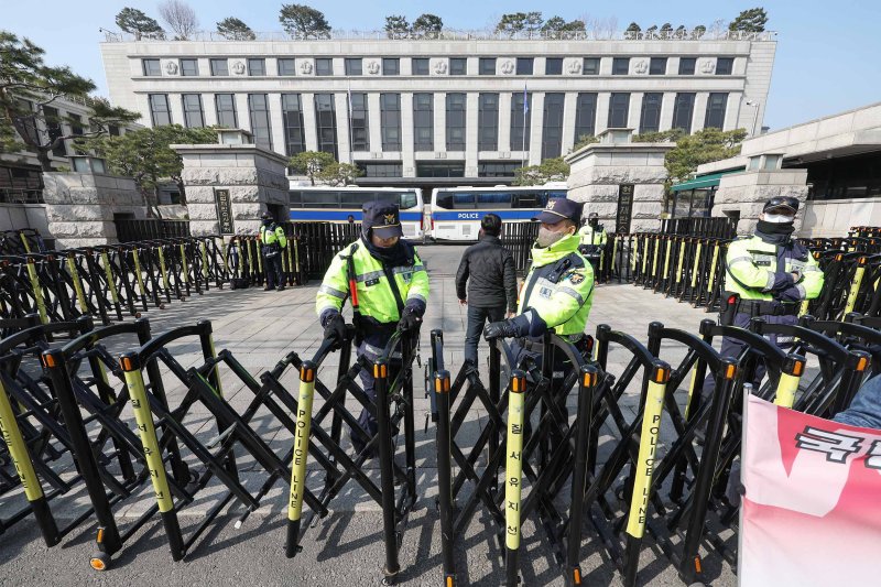 11일 서울 종로구 헌법재판소 출입로가 엄격히 통제되고 있다. 사진=뉴스1