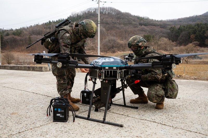 12일 경기 파주 무건리훈련장에서 열린 한미연합 WMD 제거훈련에서 25사단 장병들이 의심시설을 정찰하기 위해 소총사격무인항공기를 준비하고 있다. 사진=육군 제공